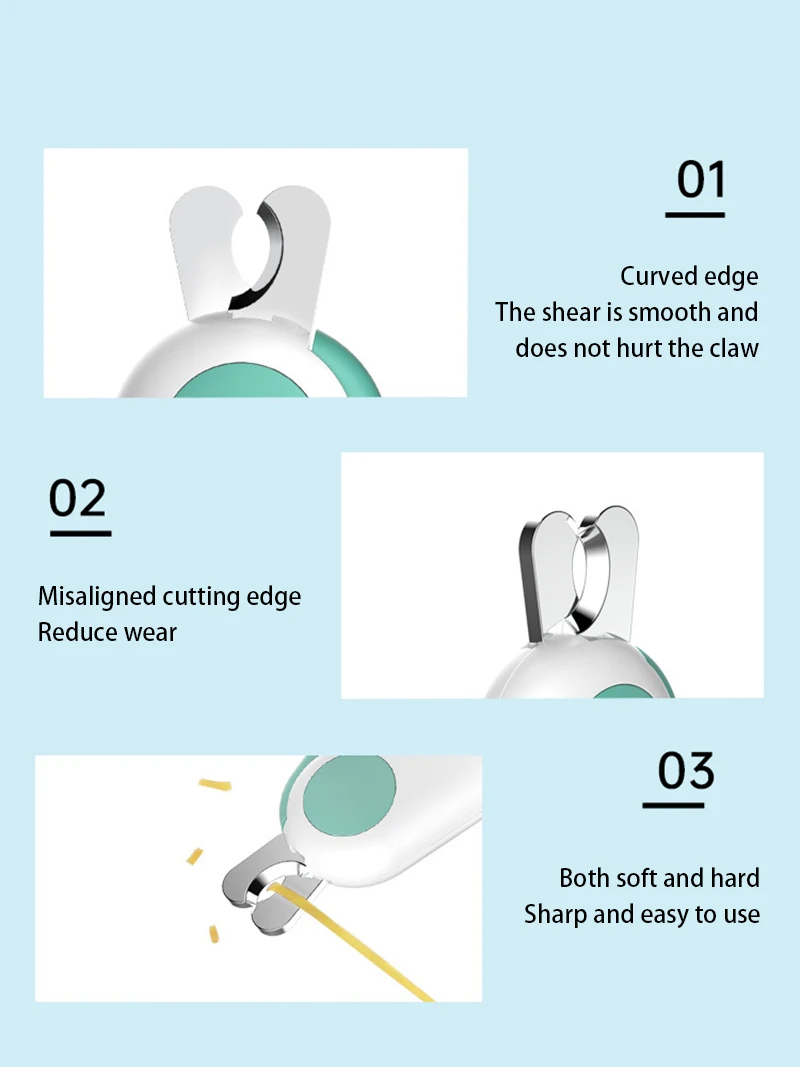 • Luz LED:A luz LED embutida ilumina as unhas do seu animal de estimação, facilitando a visualização e o corte.
