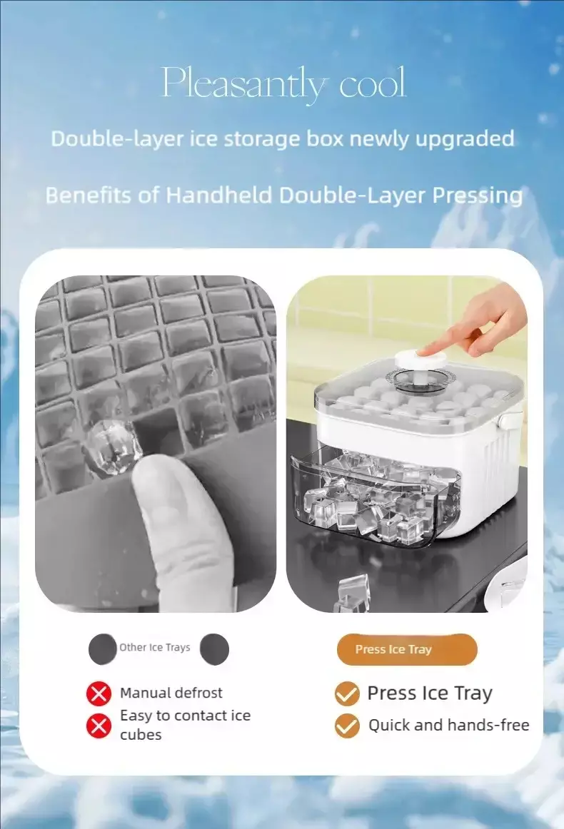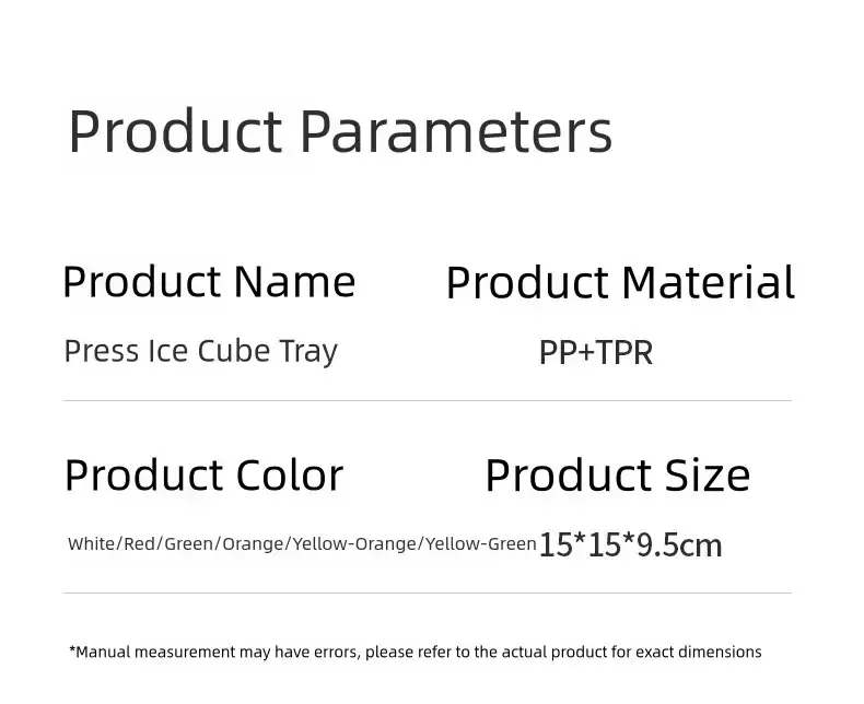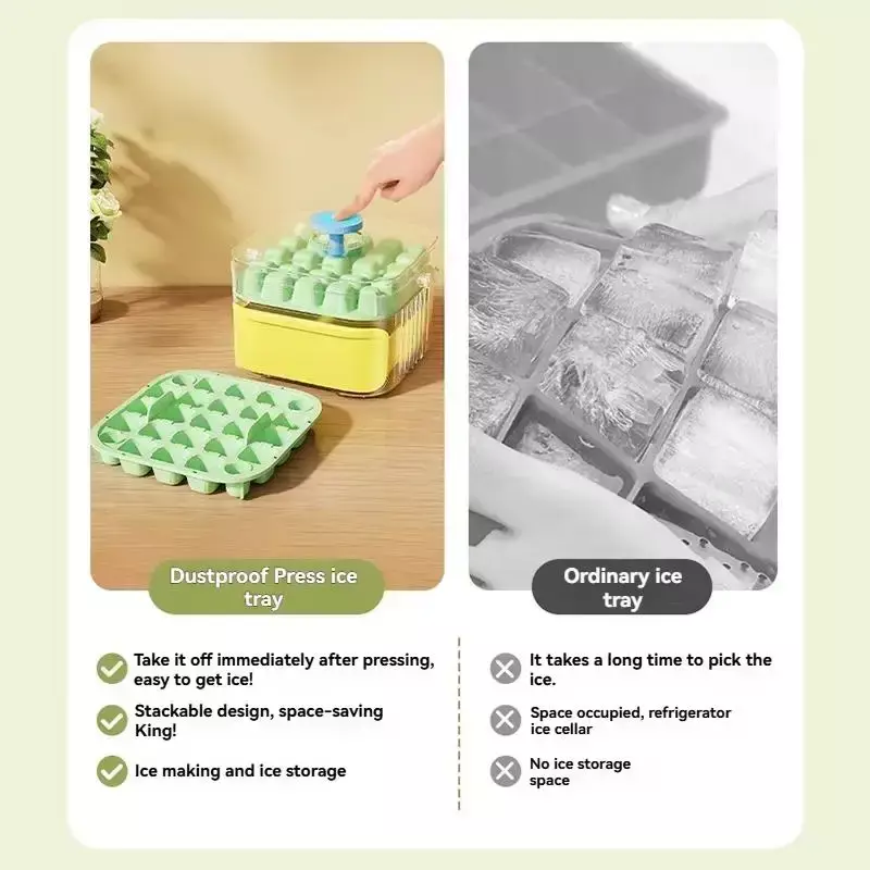 Pressionando o projeto:Pressione suavemente para remover facilmente os cubos de gelo, economizando esforço e conveniência, evitando o problema de os cubos de gelo ficarem presos ou difíceis de remover.